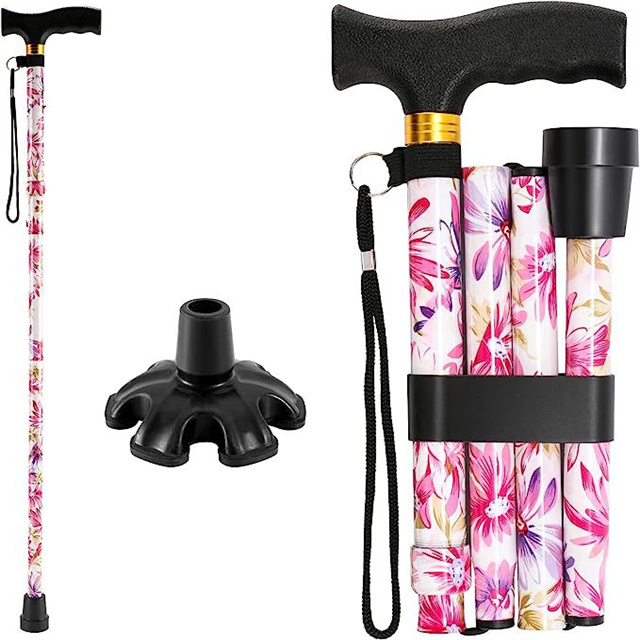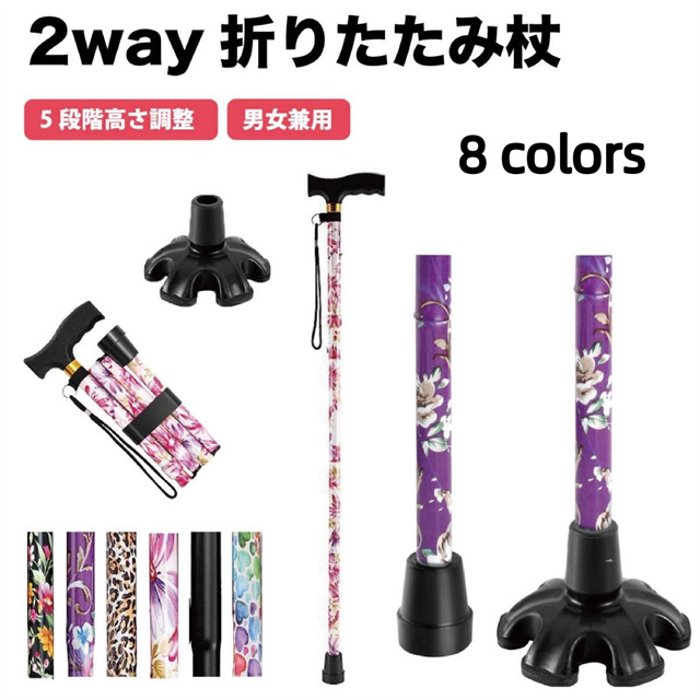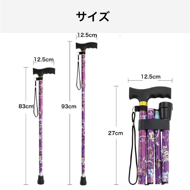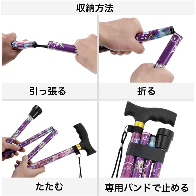 杖 花柄 おしゃれ 折りたたみ 自立杖 つえ コンパクト リハビリ 登山 介護 自立 軽量 伸縮 歩行補助 レディース 女性用 女性 敬老の日 母の日 誕生日 プレゼント ギフト ステッキ送料無料