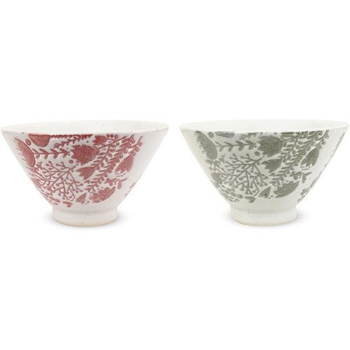 ジェイキッチンズ J-kitchens 勲山窯 ペア 茶碗 11cm 波佐見焼 日本製 粉引花束 レッド グリーン