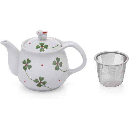 縁起の良い四つ葉のクローバーとうさぎで、癒しのひと時をお過ごし下さい。手描きでかかれた色鮮やかな四つ葉のクローバーです。つまみやすいうさぎが可愛らしいです。持ちやすい大きめの取っ手で使いやすいです。湯呑約3〜4杯分。湯?み以外は商品ではありません。