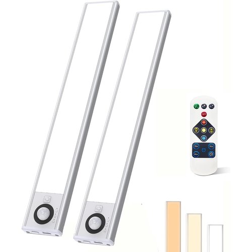 LEDバーライト 人感センサー 超薄型設計 リモコン付き 3つ色温度 10段階明るさ調節 タイマー機能 Type-C 充電式 LEDセンサーライト 屋内 室内 マグネット 簡単取り付け バー/足元灯/階段ライト 省エネ 30CM 2個セット