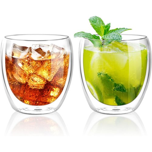 QuiExact ダブルウォールグラス 250ml 2個セット 保冷 保温 耐熱 二重 グラス ダブルウォール コップ 結露しないグラス 二重グラス アイスコーヒー グラス マグカップ ガラス 二重構造 二重ガラスコップ 2重 グラスコップ ティーカップ タンブラーグラス 透明 おしゃれ シンプル 250ml 2個セット