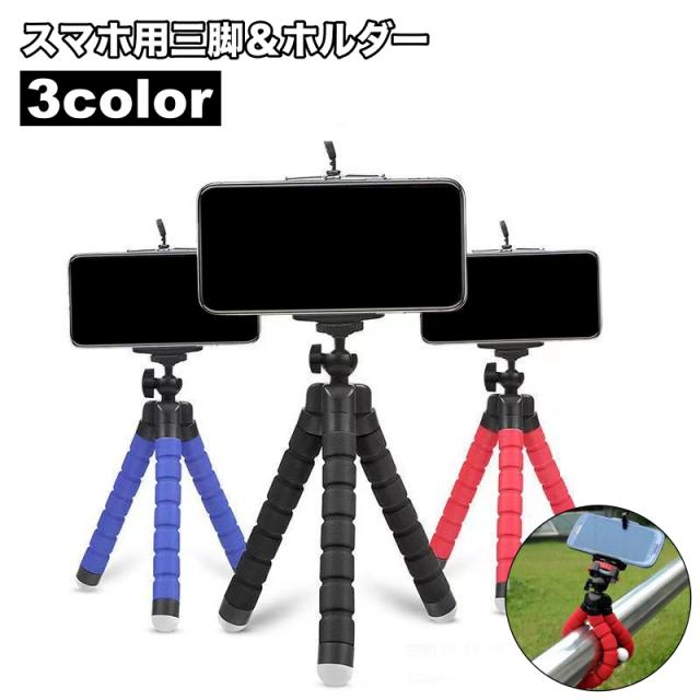 スマホ用ホルダー付きのくねくねミニ三脚セットです。