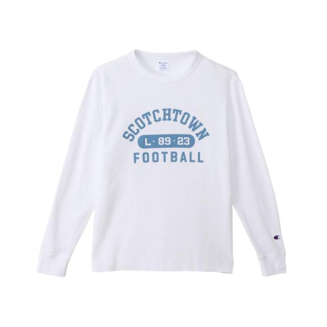 胸のプリントはChampion(R)(チャンピオン)ブランドと親和性の高いカレッジ風の書体をベースにしたもので、アーチ状、ストレート状の文字でカプセルナンバーを囲んだデザイン、アーチ状、ストレート状の文字を2段にレイアウトしたデザインの2タイプ(6種類)。