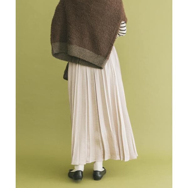 動くたびに揺れるプリーツと、サテンならではの上品な光沢感が魅力の一枚。重めなトップスなどに軽やかさをプラスして、バランスの取れた着こなしに。シンプルなコーディネートもぐっと華やぐ、秋冬のスタイリングにおすすめのアイテムです。