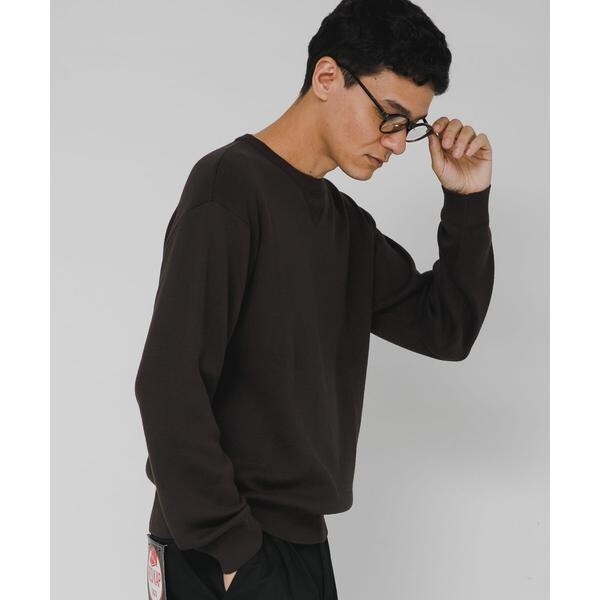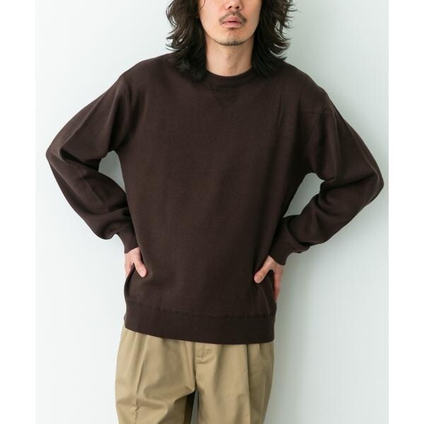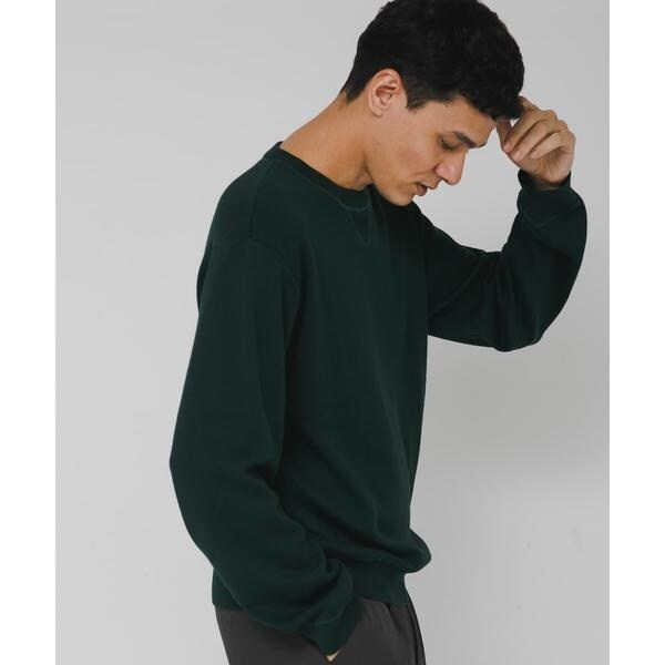 スウェットのような手軽さと、ニットならではの柔らかな風合いを兼ね備えた一枚です。