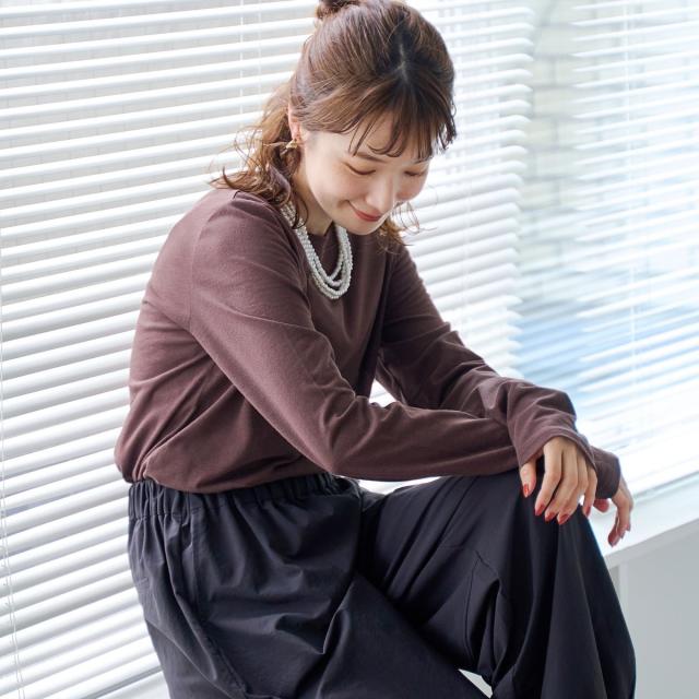 程よいサイズ感で着回しやすい、綿ナイロン素材のベーシックなロングスリーブTシャツ。