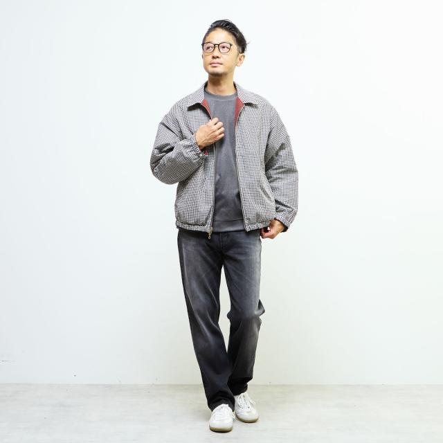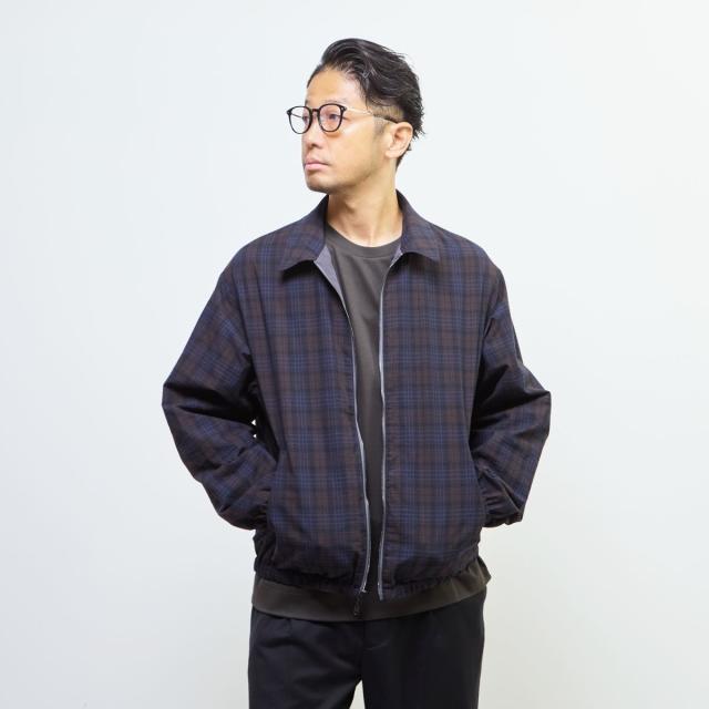 割繊タフタ×トラッドチェックリバーシブルハリントンジャケット