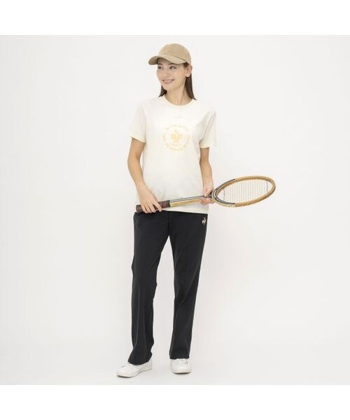 ● 特徴・デザインポイント/tennisをコンセプトにしたデザインをあしらった半袖Tシャツ。前身にはテニスをイメージしたオリジナルグラフィック。1882年フランス生まれのスポーツブランド、ルコックスポルティフ。140年以上の歴史の中で、昔も今もスポーツを共に楽しむ人々が集まるクラブチームをテーマとした、“le club de LCS”シリーズ。ブランドの象徴的なスポーツの一つである(テニス)からインスパイアされたデザインコレクション。●素材着心地/ 独特のもちっと柔らかい風合いが特徴の新規開発素材”ヘランカ”を採用したシリーズ。かさ高性とストレッチ性に優れ空気を纏うような感覚を与えるシャツ地。また、日傘のように太陽の光をブロックするサンスクリーン機能を搭載し、太陽光の熱を遮ることで、ウェアやウェア内の温度上昇を抑えるクーリング効果あり。 ●機能/吸汗速乾、ストレッチ、UV CUT(UPF50+)、遮熱、クーリング(効果)、SUNSCREEN サンスクリーン(遮熱クーリング)機能搭載なので、太陽がじりじりと照りつける中でも、快適に着用することが可能。 ●シルエット/セットインスリーブのベーシックな半袖Tシャツ。運動時からデイリーユースまでおすすめ。