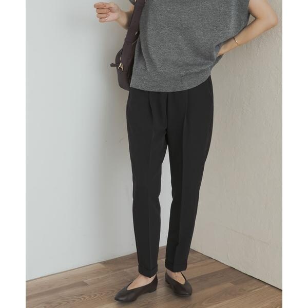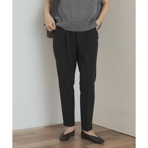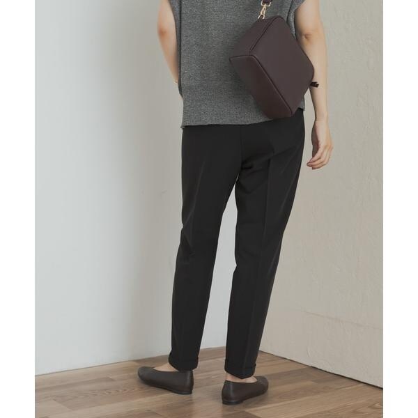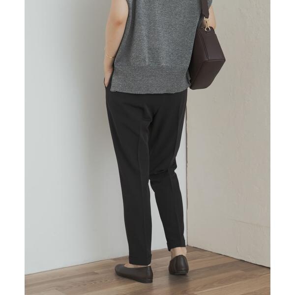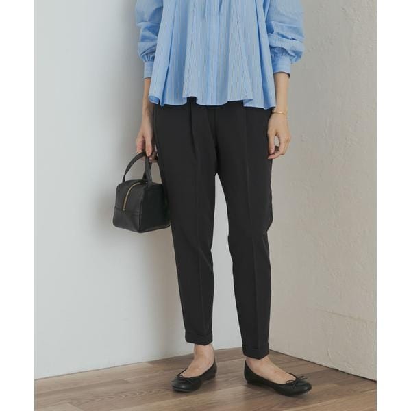 テーパードのスッキリとしたシルエットやセンタープレスが美しく、ストレッチの効いた生地やゴム仕立てのウエストがリラックスして穿くことができるため、デイリーユースしやすい一着になっています。