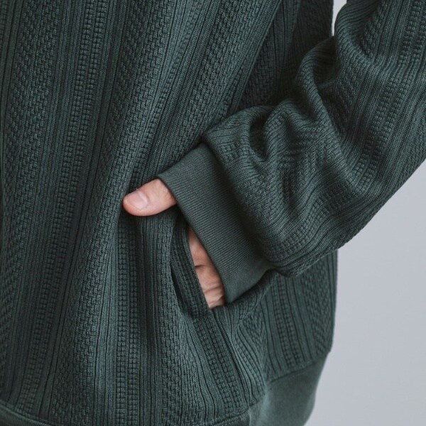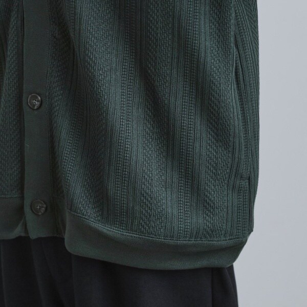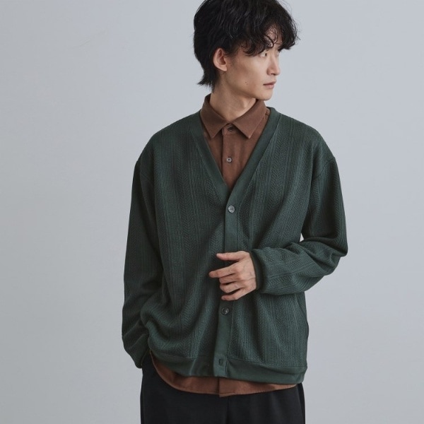ニットのような編み柄をジャカードで表現したカーディガン。