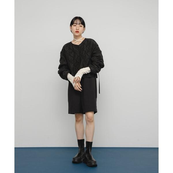 ※この商品は、デザイン上モノフィラメント糸を使用しています。糸の特性上ザラザラした肌触りがあり、肌に触れますと赤くなる場合があります。特に肌が弱い方や汗をかきますと顕著になります。直接肌には着用せず、下に1枚着用することをお勧めいたします。