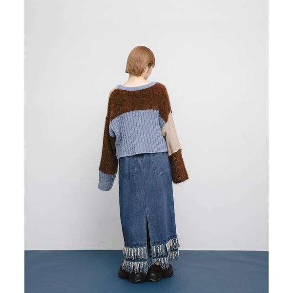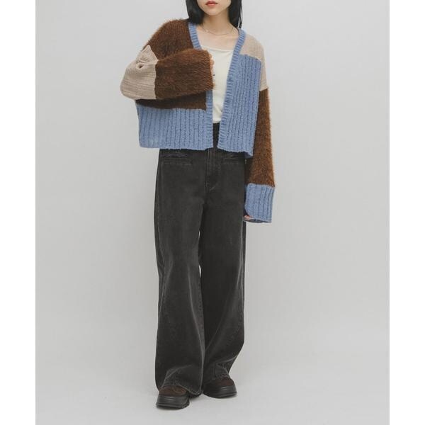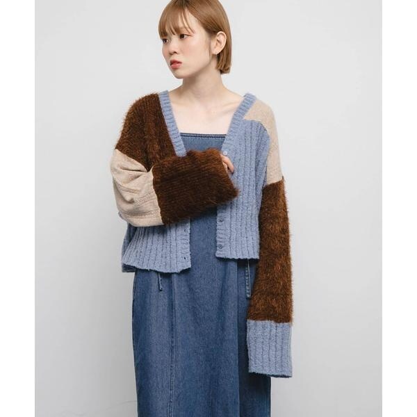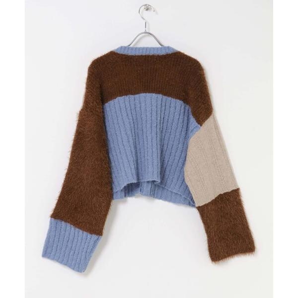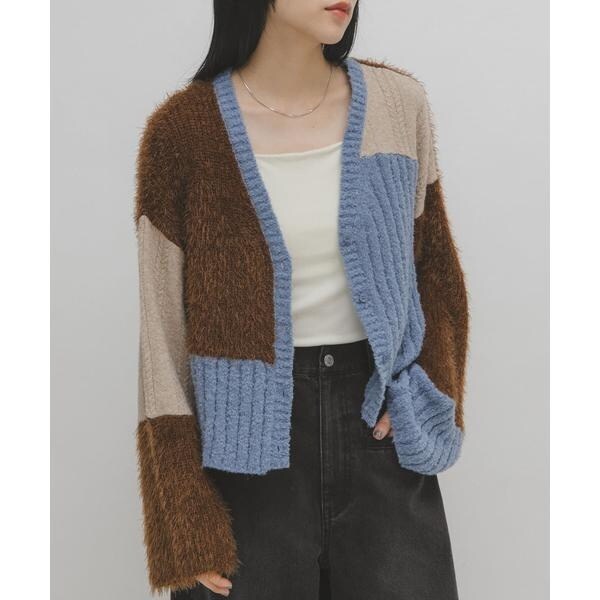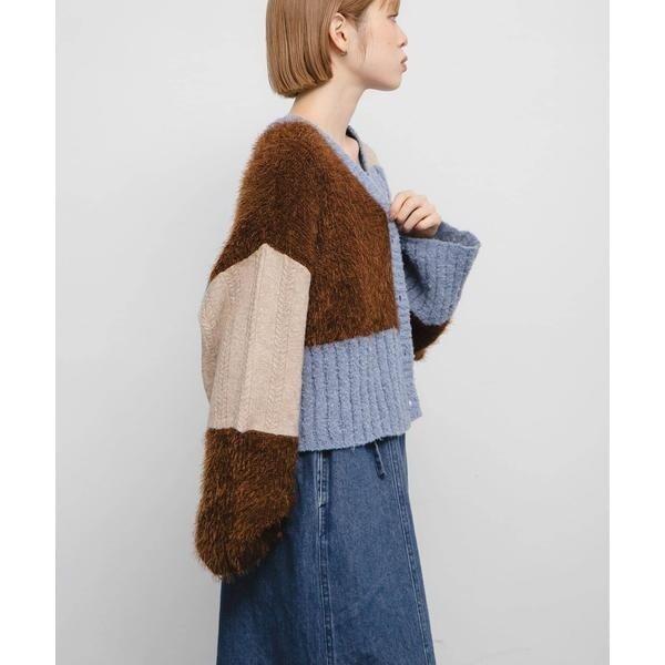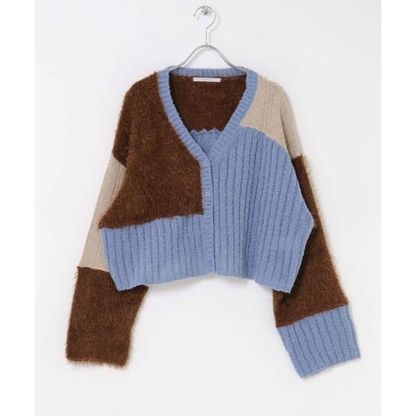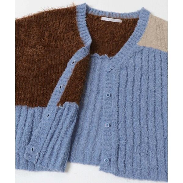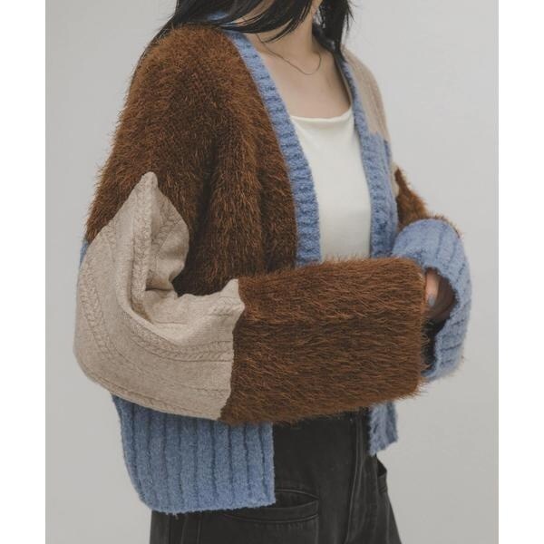 ブークレ糸やフェザー、ケーブル編みなど様々な編地を組み合わせた表情豊かなカーディガン。パッチワーク仕様がクラフト感満載です。ショート丈のサイジングは、トップスとしてのみならず羽織としても使用いただけます。合わせるインナー次第で雰囲気が異なり、いろんな着こなしを楽しめます。