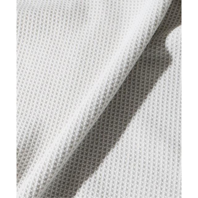 ワッフル調の鹿の子(ピケ)素材で、さりげない立体感と通気性をプラス。シンプルながらも異素材のコントラストが映えるデザインに仕上げました。