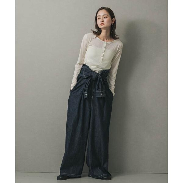・きれいめ素材のグレージュと薄手デニムのインディゴから選べる