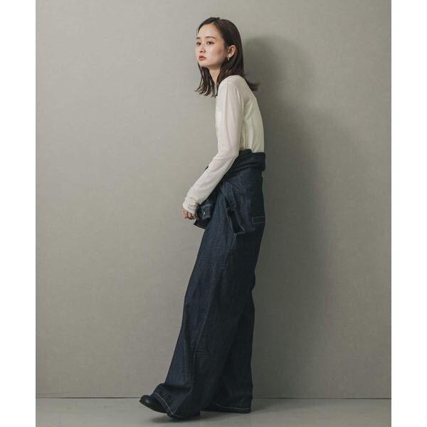 【着用カラー】ONE WASH【サイズ感】かかとがつく丈感で、ウエストが絞られているので、すっきりとしたシルエットに見えます。腰回りはゆったりとしているので、体型カバーにもなります。