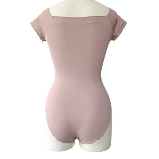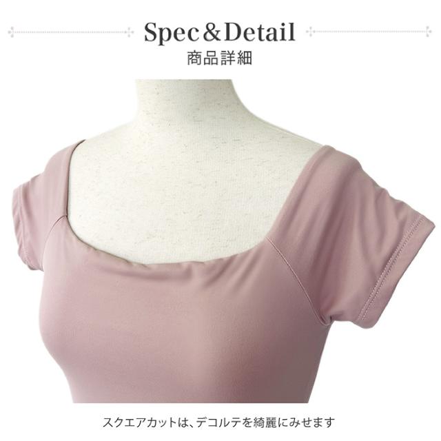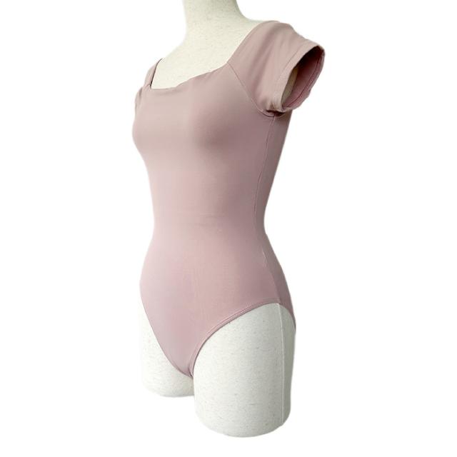 露出が多くない、でもすっきり綺麗に見せてくれる半袖レオタードです。シンプルで使いやすいデザインですが、首回りのスクエアの開きが美しい♪コーデしやすいカラー