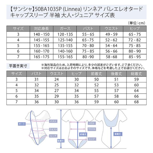 【サンシャ】50BA1035P (Linnea) リンネア バレエレオタード キャップスリーブ 半袖 大人・ジュニア