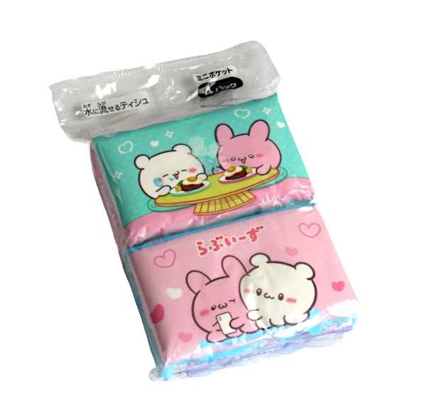 水に流せるティシュ らぶい~ず ミニ 16枚(8組)×4個入 [色柄指定不可] (100円ショップ 100円均一 100均一 100均)