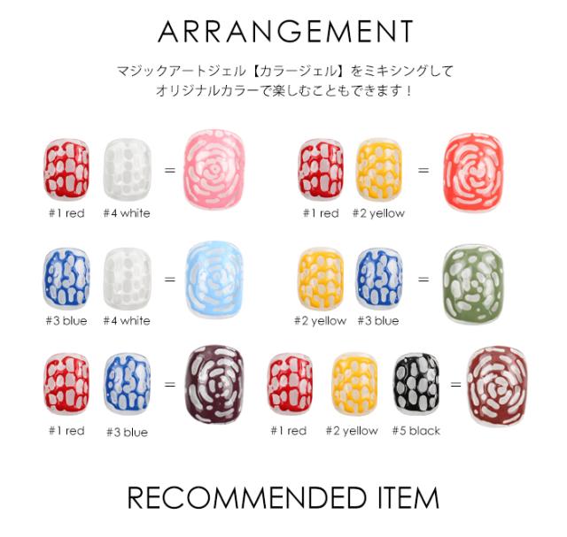 マジックアートジェル【ベース】 マジックアートジェル【カラージェル】 【1】レッド 【2】イエロー 【3】ブルー 【4】ホワイト 【5】ブラック |
