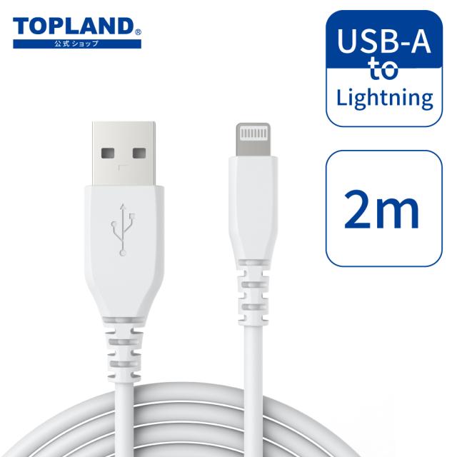 Lightnin ライトニング ケーブル 充電ケーブル 充電器 ソフト 強靭 断線防止 データ転送 Apple認証 MFi認証 iPhone iPad iPod スマホ 2m オフィス デスク 机 事務所 ホワイト CHLS20 【トップランド 公式ショップ】