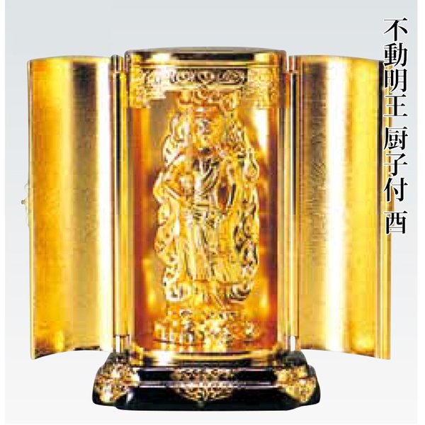 仏像 不動明王 仏像 フィギュア 合金製 純金メッキ 厨子入り 渡辺景秋作 十二支仏像 高岡銅器 日本製 空海 不動明王像 お守り 置物 かわいい ミニチュア 販売 送料無料