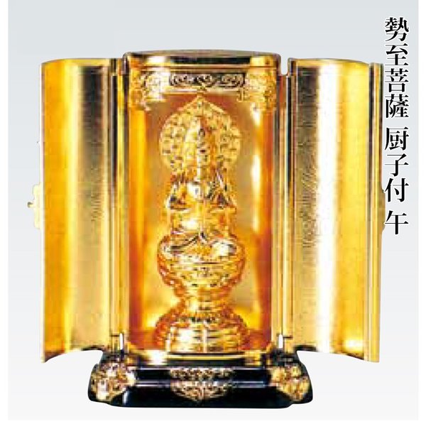 仏像 勢至菩薩 午年 厨子入り 合金製 純金メッキ 渡辺景秋作 十二支仏像 高岡銅器 仏像 日本製 送料無料