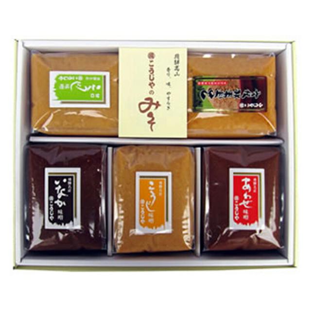 飛騨高山の老舗 こうじや自慢のみその詰合せ5種類セットです。