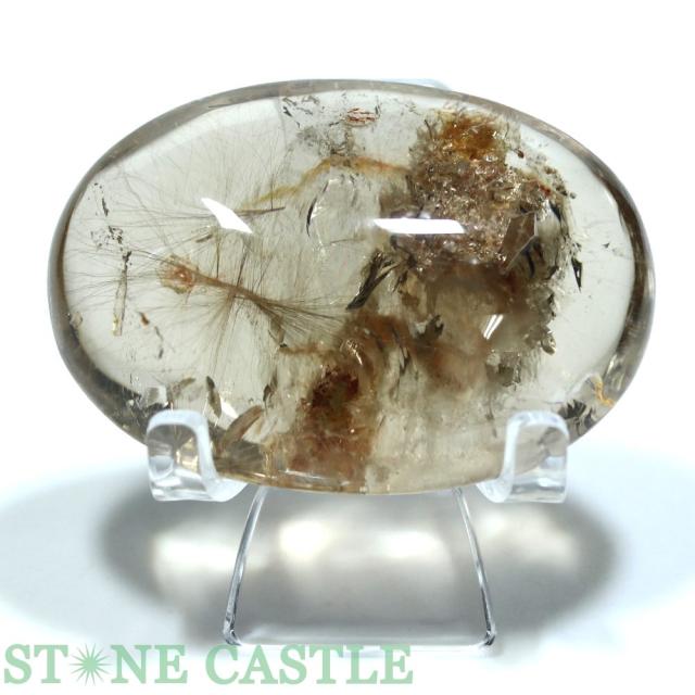 ☆一点物☆【置き石】ルース ルチルクォーツインクォーツ (晶中晶) (レインボー入り) (台付) No.26 天然石 パワーストーン