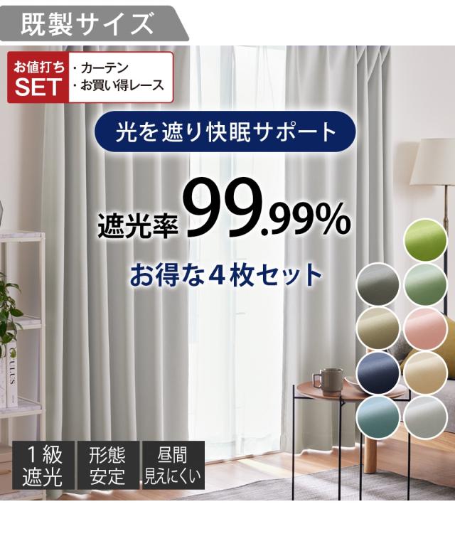 【カーテンセット】1級遮光カーテン(形態安定)&遮像・ミラーレース4枚セット|選べる9色