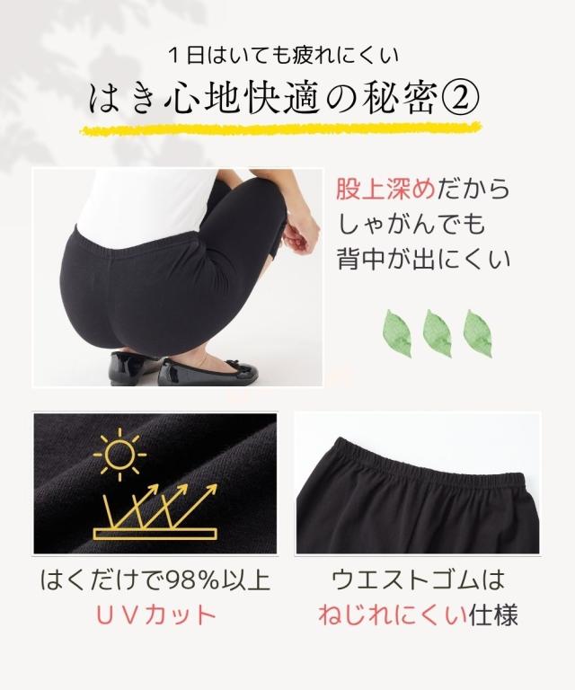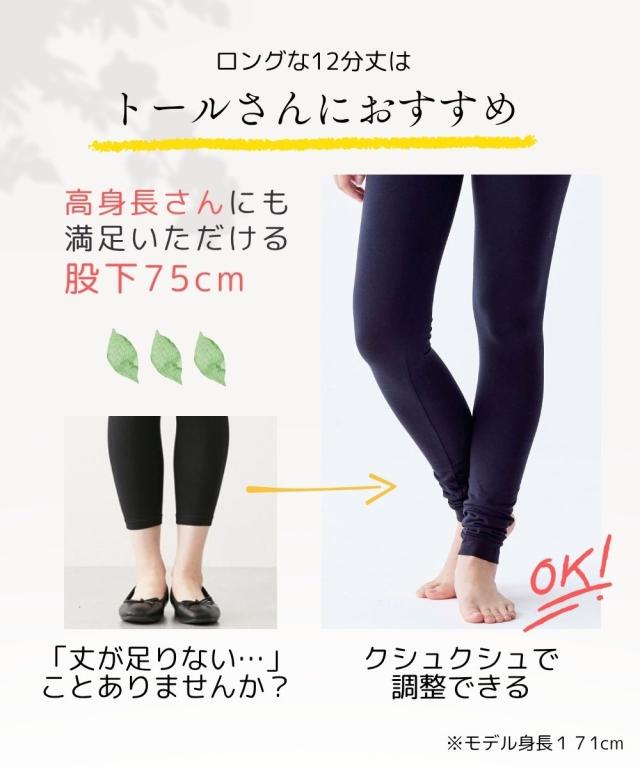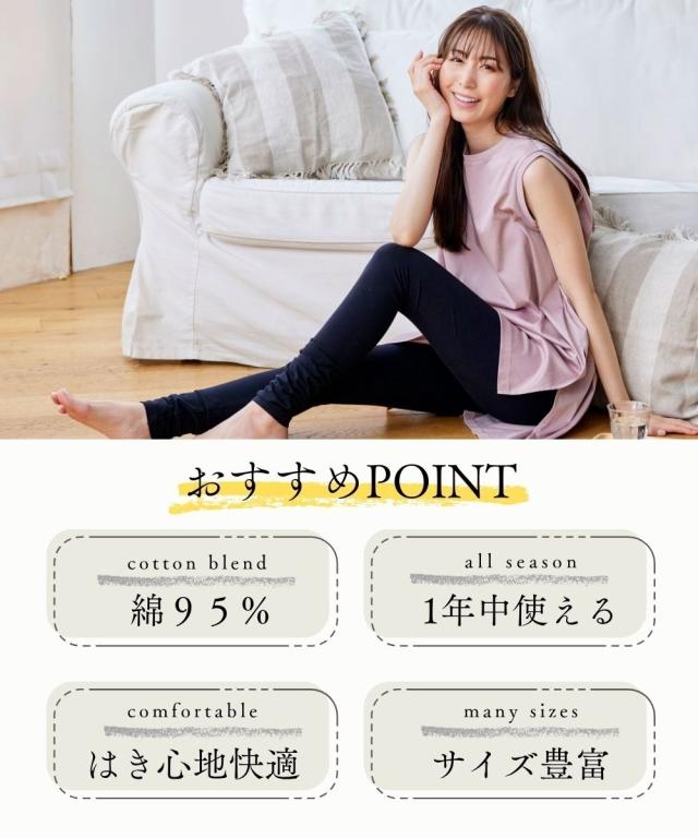 綿混シリーズ累計販売115万枚突破☆彡(2012年1月〜2025年6月)【綿混12分丈レギンス】季節を問わず、幅広い着こなしに合わせられるベーシックな12分丈レギンス!綿混なので肌ざわりがよく、1着持っていると安心の万能アイテムです。■綿混レギンスはこんな方におすすめ・お肌に優しい素材がいい・オールシーズン使えるレギンスがほしい・セット組でお得な買い物がしたい●天然素材 コットン95%お肌に直接触れるものだから、生地にこだわりたい方へ。通気性がよく優しい手ざわりの綿混をおすすめします。●オールシーズン対応厚すぎず薄すぎない、程よい生地感。夏は涼しく、冬は暖かく着られます。季節を問わず、1着持っていると安心の万能アイテムです!●1日はいても疲れにくい縦横ストレッチで快適なはき心地です。ヒザの曲げ伸ばしもラクラク!ウエストゴムも伸縮性が高く、ゆったり。ストレスフリーで、1日中はいても疲れません ●豊富なサイズ展開どんな体型の方にもご満足いただけるように、M-Lから10Lサイズをご用意しました。●細部にもこだわった仕様股上深めなので、かがんでも背中が見えにくい!98%以上の紫外線を防ぐので、はくだけで日焼け対策にも!ウエストゴムはねじ