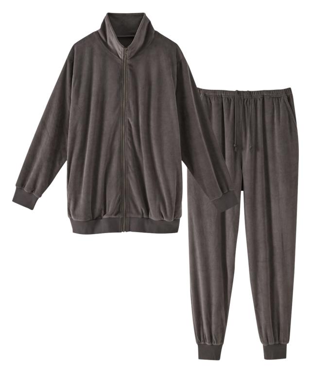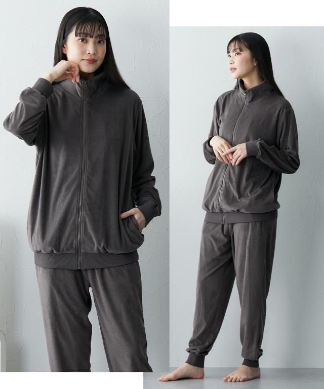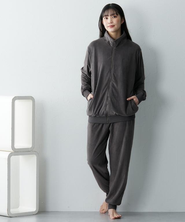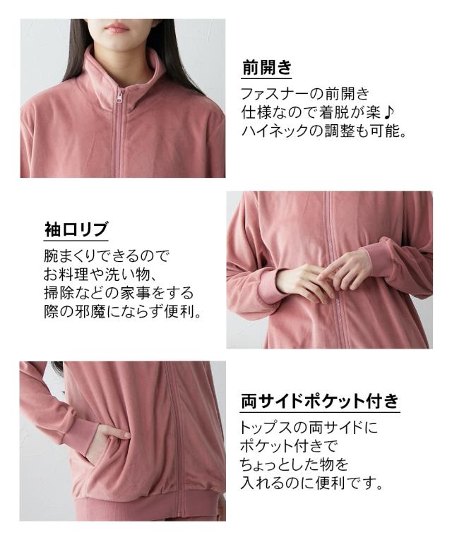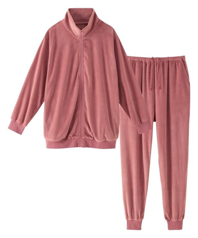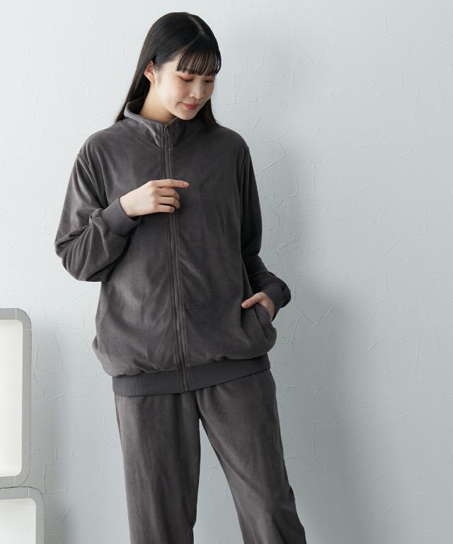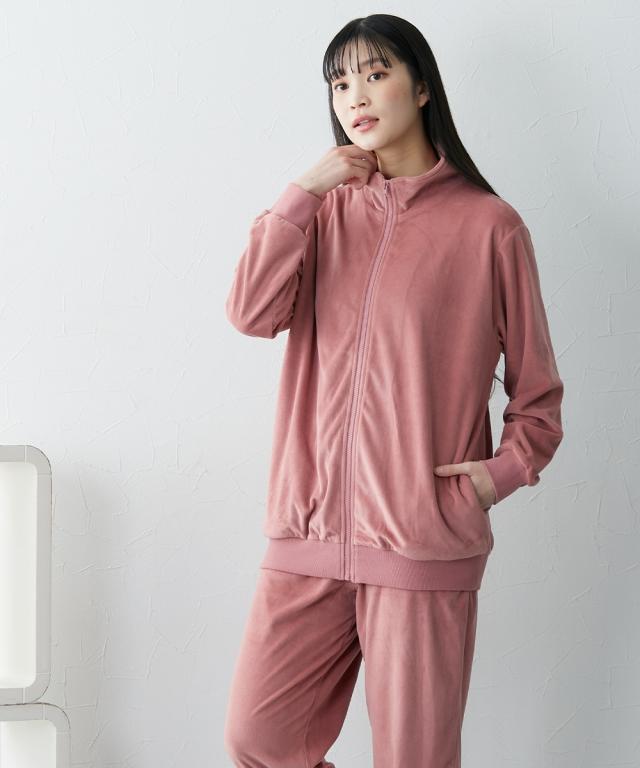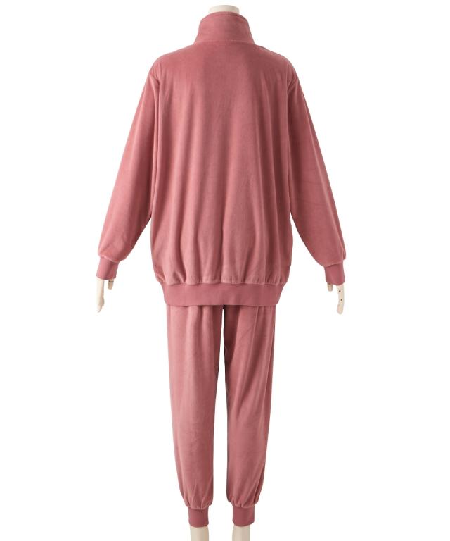 ベロアニットスタンドカラージップアップルームウェア上下セット
