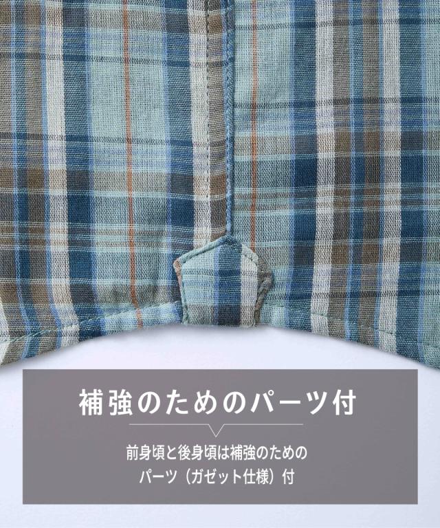 ふんわりソフトな風合いで、素肌にやさしい綿100%ダブルガーゼ素材のチェックシャツ。お腹まわりにゆとりをもたせた独自設計で、気になる体型をカバーします。大きいサイズも展開しております。(M/L/LL/3L/4L/5L/6L/8L/10Lサイズ)■デザインバリエーション豊富な柄展開でボトムを選ばず着回し出来ます。お腹まわりにゆとりを持たせたこだわりの設計で、『首回り・着丈・袖丈はジャストサイズなのにお腹まわりが少し窮屈・・』と言うお悩みにも解決!1サイズ上げる事なくスッキリ着こなせます。前身頃と後身頃をつなぐ箇所は補強のためのパーツ(ガゼット仕様)を施しております。ボタンの付け糸はクロス付けで、とれにくくなっております。■素材肌に優しい綿100%ダブルガーゼ素材で洗うほどに柔らかくなじみ着心地 程よい厚みの素材感で長いシーズン着用可能です。■おすすめのおしゃれスタイリングボトムを選ばないカラーでコーディネートしやすいのが特徴です。