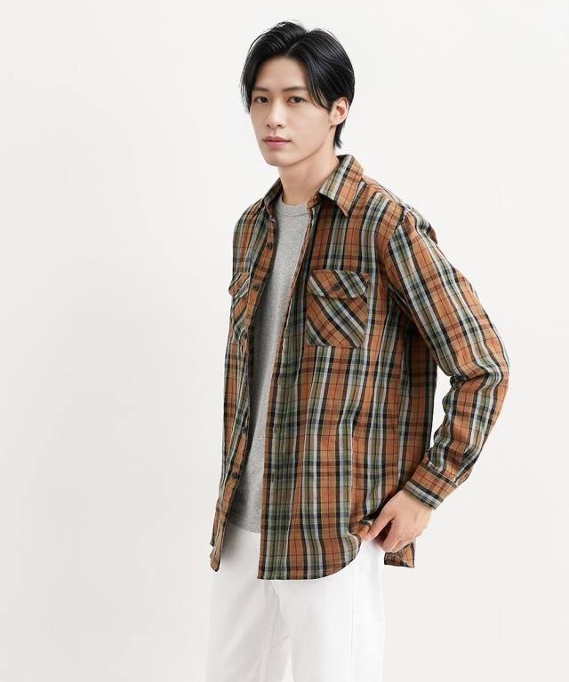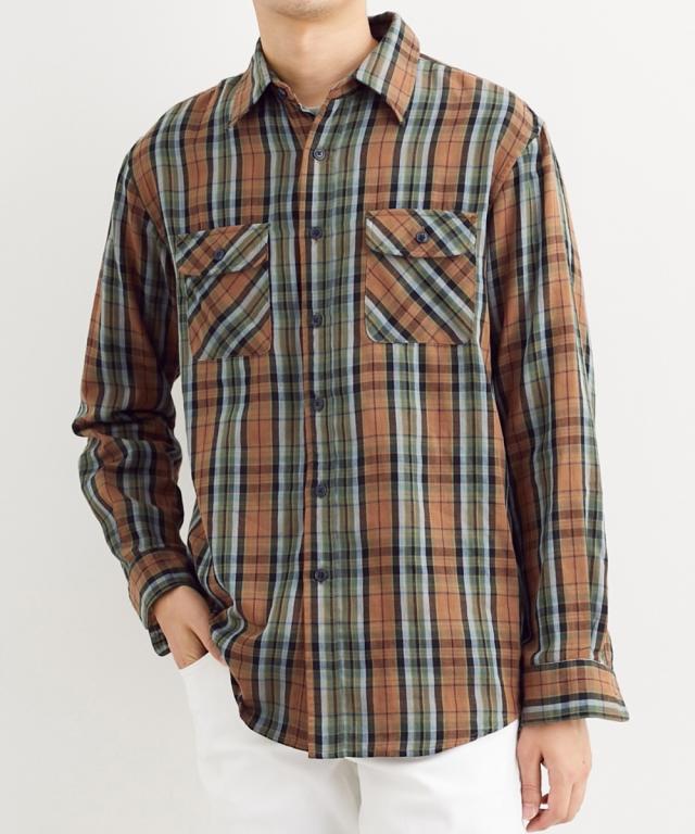 Tシャツ カットソー メンズ 綿100% ダブルガーゼ先染チェック柄 長袖 シャツ 春 秋 トップス | M/L/LL | ニッセン nissen