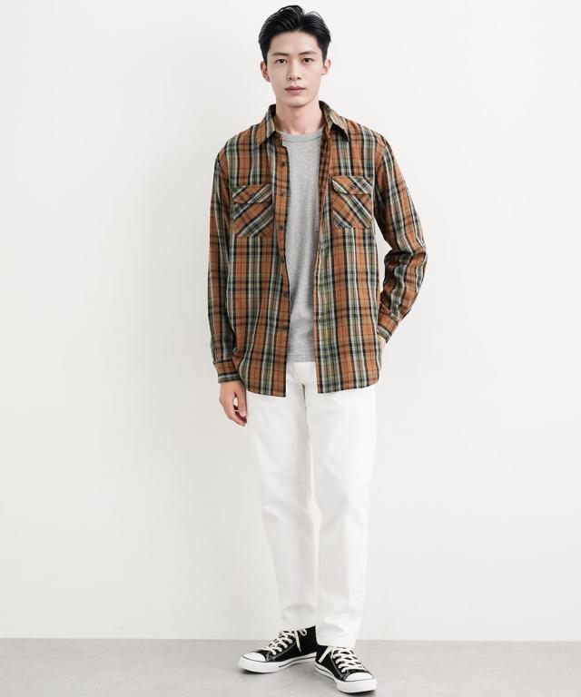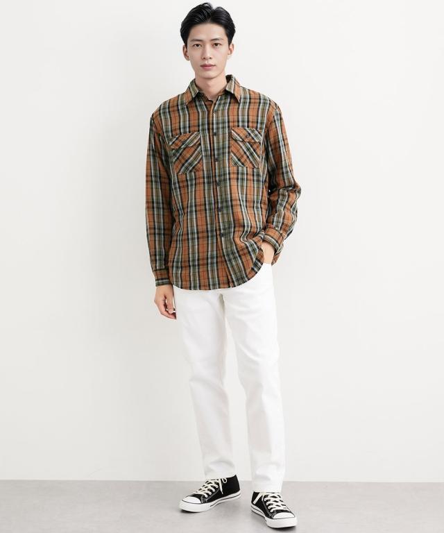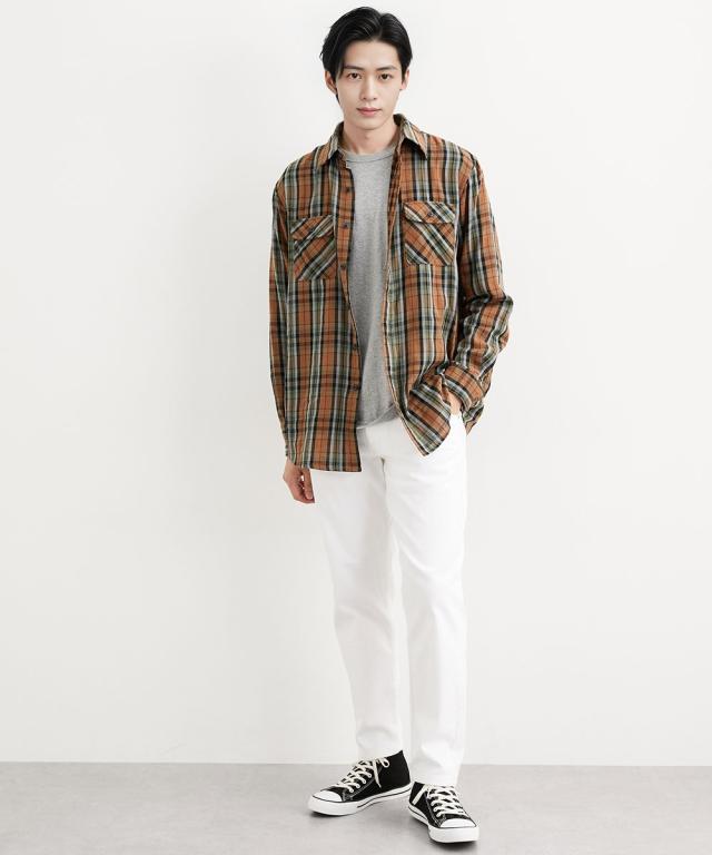 Tシャツ カットソー メンズ 綿100% ダブルガーゼ先染チェック柄 長袖 シャツ 春 秋 大きいサイズ トップス | 3L〜10L | ニッセン nissen