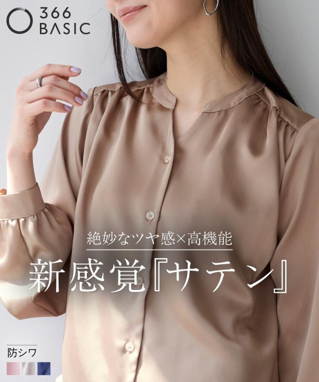 上品な光沢感となめらかな風合いが特徴のサテンブラウス■デザインギラギラしすぎない上品な光沢感。シンプルで流行りに左右されないゆったりデザイン。デイリーはもちろんオフィスやオケージョンまで対応できる優秀シャツ。シンプルだからこそ綺麗に着用できるシルエットにこだわりました。サテンの特徴である落ち感が綺麗なシルエットに。衿元はすっきり見えするスキッパーデザイン。ショルダーギャザーをたっぷり入れているので上品で華やかな印象に。サテンのイメージを覆す新感覚サテンです。■素材程よい厚めの生地を採用。上品な光沢感がありなめらかな風合いです。防しわ機能付きなのでシワになりにくく、気軽に着用いただけます。■おすすめのスタイリング上下セットアップで着用可能。どんなボトムスにも合わせやすく幅広いシーンで活躍します。キレイめのパンツやスカートと合わせてオフィススタイルも〇デニムやショートパンツと合わせてタウンユースとしてもお使いいただけます。