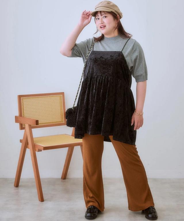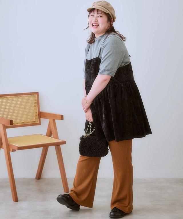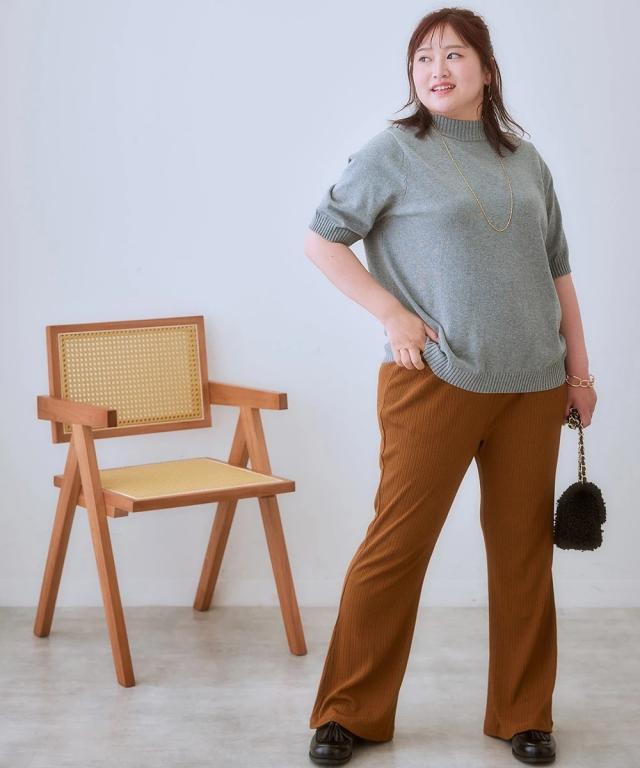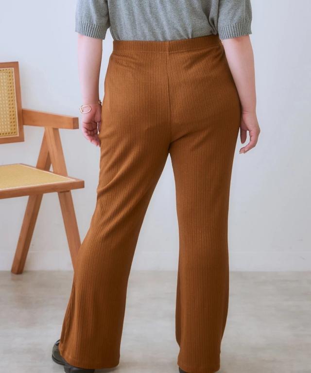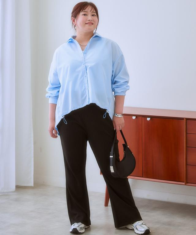 くびれシルエットでスタイルアップ!ラクなのに美脚が叶う、大きいサイズの足長パンツ■デザイン気になるお腹まわりをカバーしつつ、くびれを強調するシルエットで、スタイルアップ効果抜群のパンツです。ゆったりヒップ設計で、気になる下半身をふんわりカバー。裾に向かって緩やかに広がるフレアラインが、脚を長く、そして細く見せてくれます。ウエストは総ゴム仕様で、ストレスフリーな穿き心地。さらに、調節可能な紐付きで、自分にぴったりのフィット感を実現します。両脇には便利なポケット付きで、機能性も 。■素材高品質なポリエステル95%に、ポリウレタン5%をブレンド。なめらかで肌触りが良く、ストレッチ性にも優れているので、動きやすく快適な穿き心地です。シワになりにくく、お手入れも簡単なので、デイリーユースに最適です。■おすすめのスタイリングトレンドのオーバーサイズトップスと合わせて、こなれ感のあるカジュアルスタイルに。トップスをインすれば、くびれシルエットが際立ち、よりスタイルアップ効果が期待できます。足元は、画像のようにヒールのあるパンプスを合わせれば、より女性らしい印象に。スニーカーを合わせれば、カジュアルで動きやすいスタイルに。アクセ