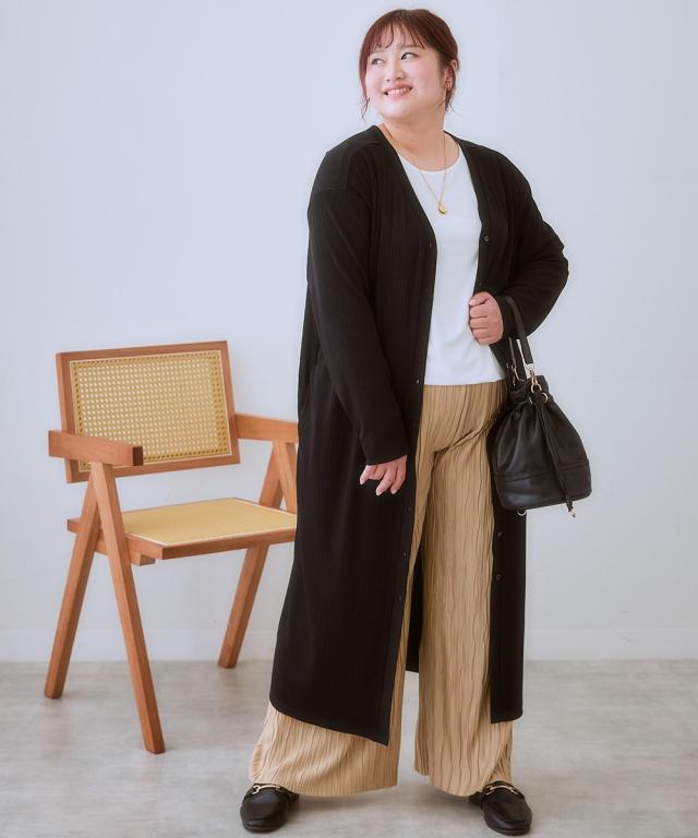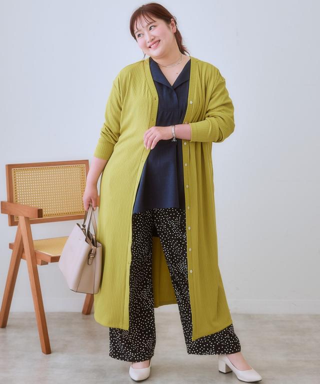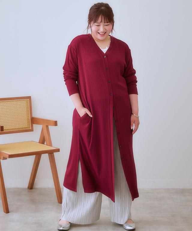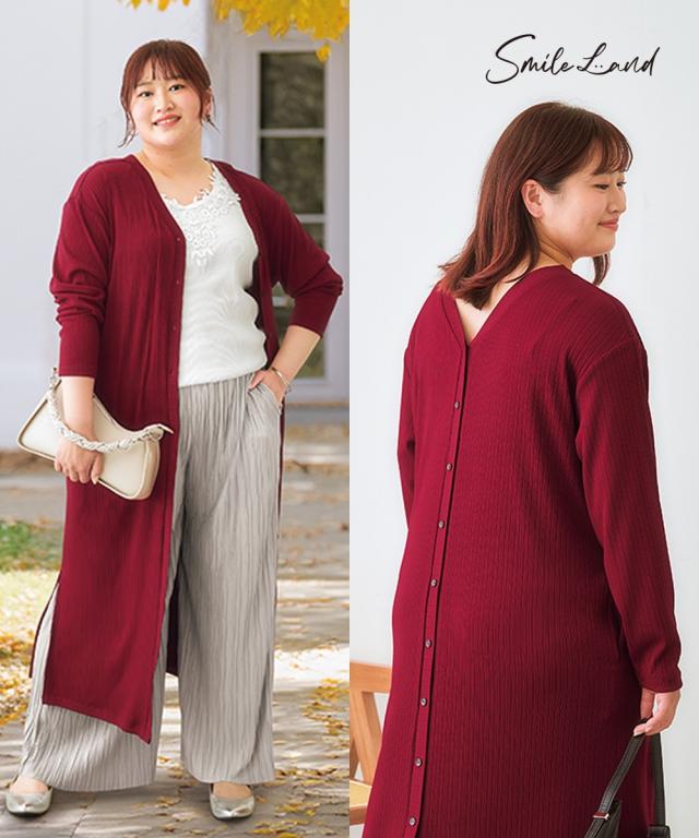 大きいサイズ ワンピースにもなる前後2WAYロング丈カーディガン