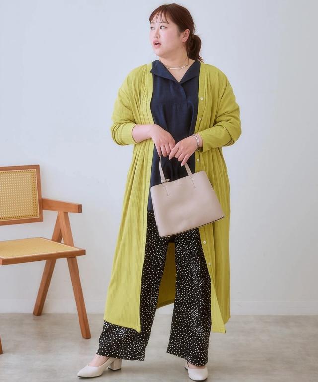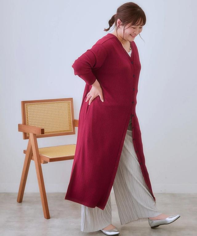 2WAYロングカーディガン。ワンピースにもなるから、着こなし自由自在。トレンド感と着心地の良さを両立した、大人のためのトレンドアイテム。■デザインすっきりとした印象を与えてくれるロングカーディガン。ボタンを閉じればワンピースとして、開ければ羽織りとして、2WAYで楽しめるのが魅力です。ゆったりとしたシルエットで体型をカバーしつつ、Iライン効果でスタイルアップも叶えます。前後どちらでも着用できる2WAYデザインなので、気分やコーディネートに合わせて着こなしを変えられます。Vネックとクルーネックの2種類の表情を楽しめるのも嬉しいポイント。両脇には便利なポケット付き。トレンドのレイヤードスタイルにもおすすめです。■素材なめらかで肌触りの良い素材を使用しています。伸縮性があるので動きやすく、ストレスフリーな着心地。シワになりにくいので、お手入れも簡単です。程よい落ち感があり、上品な印象を与えてくれます。■おすすめのスタイリングワンピースとして着用する際は、インナーにレーストップスを合わせて、フェミニンな雰囲気に。足元はフラットシューズやブーツで、抜け感をプラスするのがおすすめです。羽織りとして着用する際は、Tシャツとプリーツパンツの