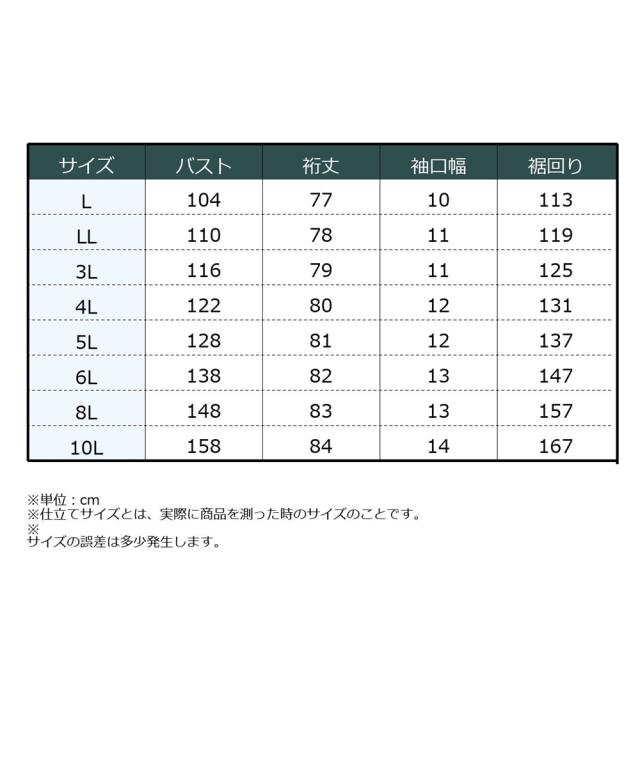 品質:品質=ポリエステル95%・ポリウレタン5% ポケット両脇 前ボタン開き 両脇スリット約28cm 透け感:透けにくい 伸縮性:あり 生地の厚み:薄い 光沢感:なし 裏地:なし ポケット:あり 季節:春・夏・秋 シルエット:普通 原産国:中国製 備考:洗濯機OK ネット使用 ※単位:cm ※仕立てサイズとは、実際に商品を測った時のサイズのことです。 ※サイズの誤差は多少発生します。