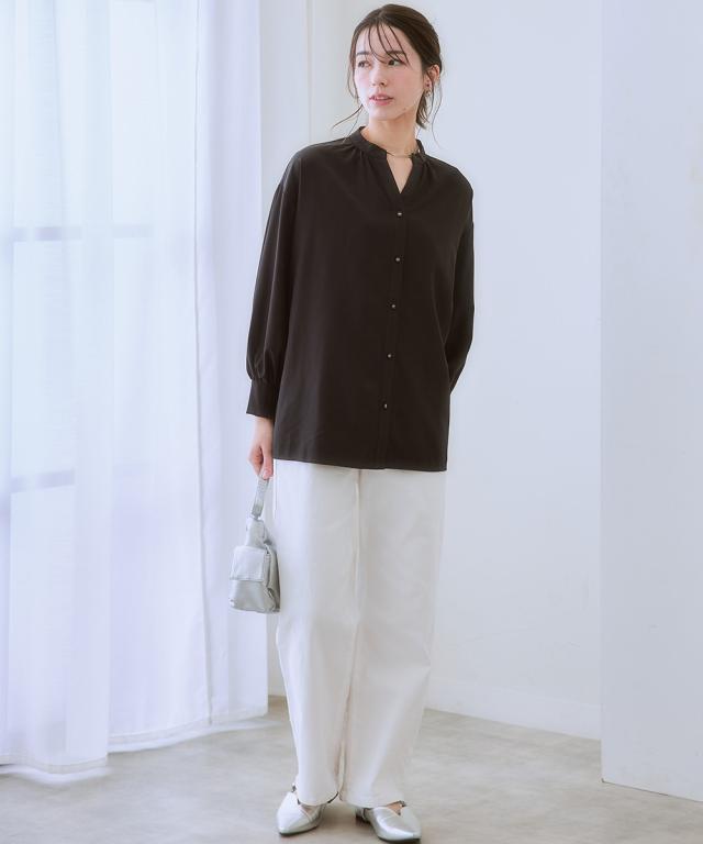 シャツ ブラウス レディース とろみ素材 バック シャーリングスキッパー 防シワ 吸汗速乾 春 秋 | S/M | ニッセン nissen