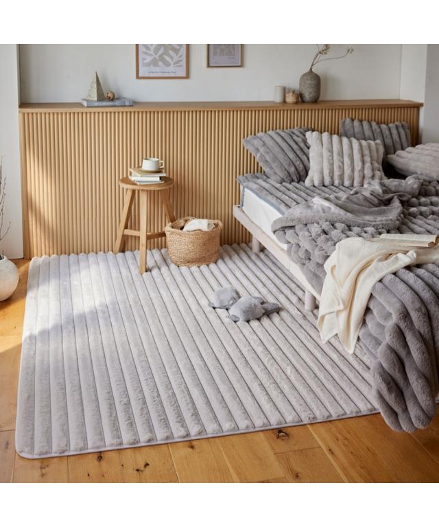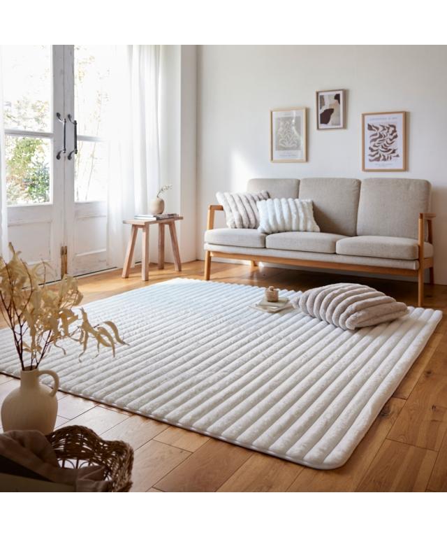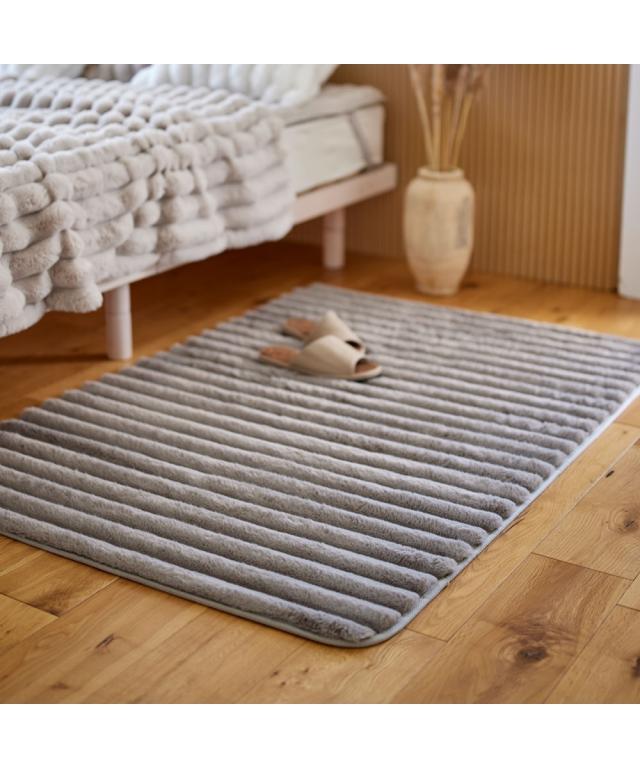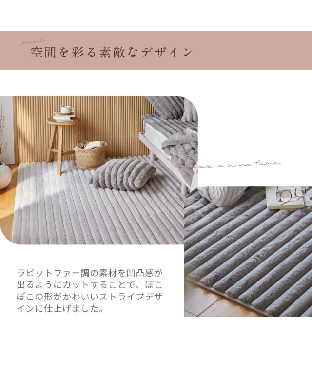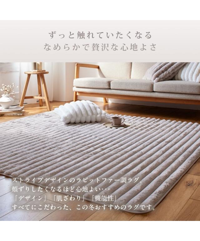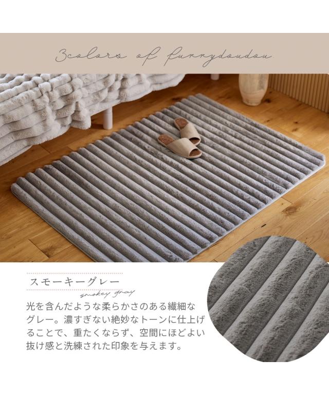モコモコ デザインラグ ストライプ ラビットファー調(furry doudou./ファーリードゥドゥ)