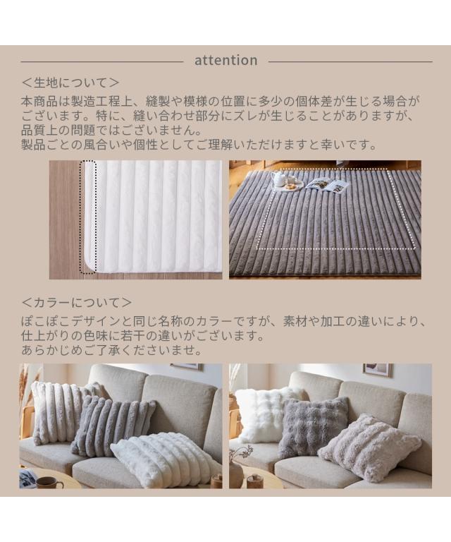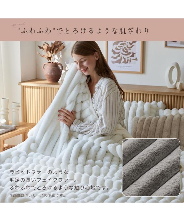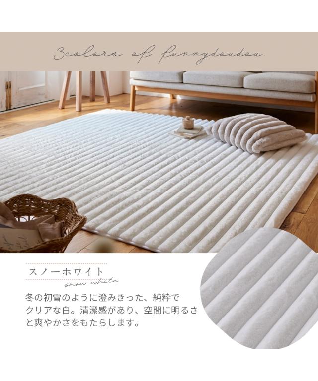 furry doudou.“あなたの毎日に寄り添う、ちょっと特別な存在に”furry doudou.(ファーリードゥドゥ)はオリジナルブランドです。触れるたびに幸せな気持ちになるような、柔らかくて心地よいファブリック。それでいてデザインも素敵なものを。肌ざわりや見た目だけでなく、使い心地(=機能性)だって大切にしたい。furry doudou.は、あなたの毎日を心地よく彩り、心に寄り添う特別な存在であり続けます。ずっと触れていたくなるなめらかで贅沢な心地よさ。ストライプデザインのラビットファー調ラグ。頬ずりしたくなるほど心地よい…「デザイン」「肌ざわり」「機能性」すべてにこだわった、この冬おすすめのこたつ掛け布団です。ーー POINT ーー“ずっと触れていたい”もこもこファー■“ふわふわ”でとろけるような肌ざわりラビットファーのような毛足の長いフェイクファー。ふわふわでとろけるような触り心地です。■こだわりをお届け快適さを追求し、細部にまで想いを込めました。■空間を彩る素敵なデザインラビットファー調の素材を波型にカットすることで、ぼこぼこの形がかわいい柔らかなデザインに仕上げました。【3color】スノーホワイト:冬の初雪のように澄みきった、純粋でクリアな白。清潔