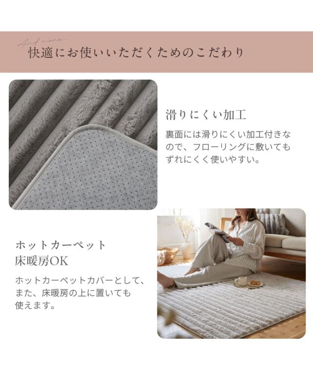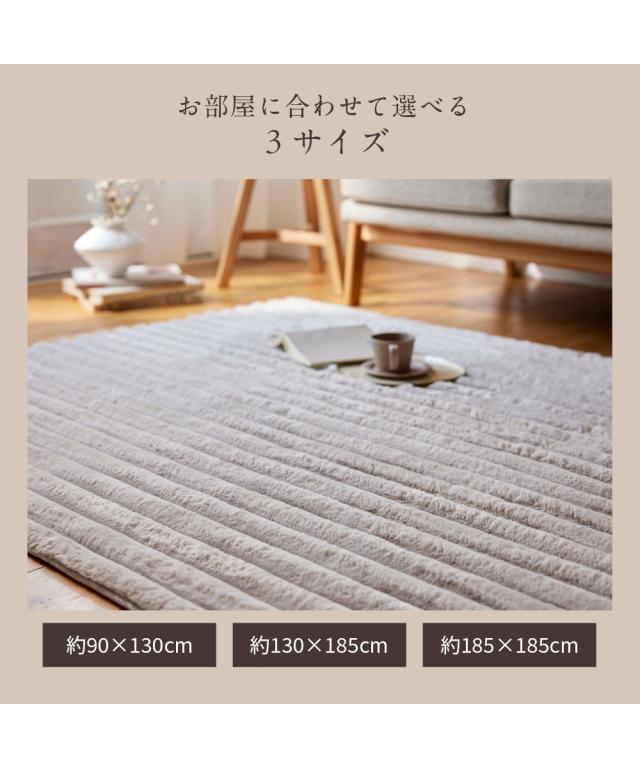 ラグ カーペット 絨毯 モコモコ デザイン ストライプ ラビットファー調 furry doudou./ファーリードゥドゥ 春 秋 冬 おしゃれ | 約185×185cm | ニッセン nissen