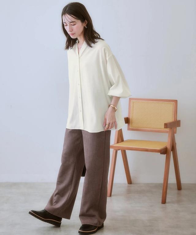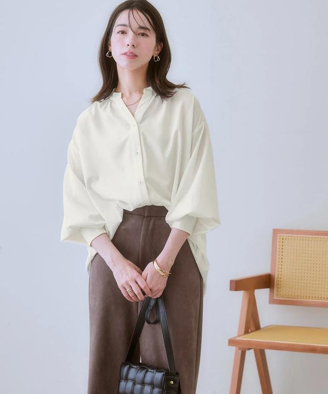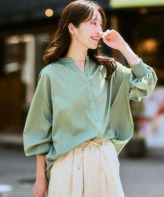 品質=ポリエステル95%・ポリウレタン5% 透け感:やや透ける ※色によって透け感が異なる場合があります。淡色カラーはベージュ系インナー着用をおすすめします。 伸縮性:なし 生地の厚み:やや薄い 光沢感:ややあり 季節:春・夏・秋・冬(冬はインナーアイテムとして活躍) シルエット:ややゆったり 原産国:中国製 備考:洗濯機OK ネット使用