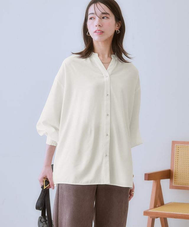 シャツ ブラウス レディース とろみ素材 バック シャーリングスキッパー 防シワ 吸汗速乾 春 秋 | L/LL/3L | ニッセン nissen