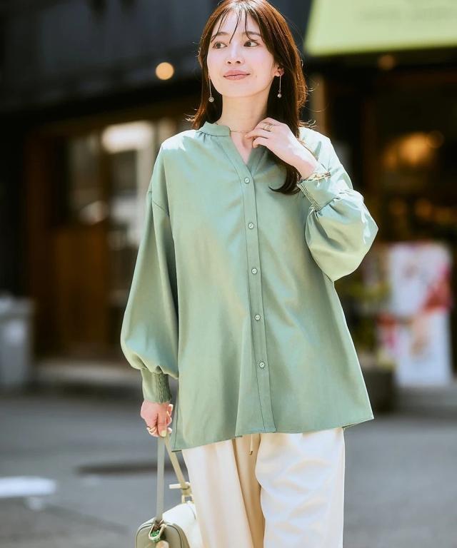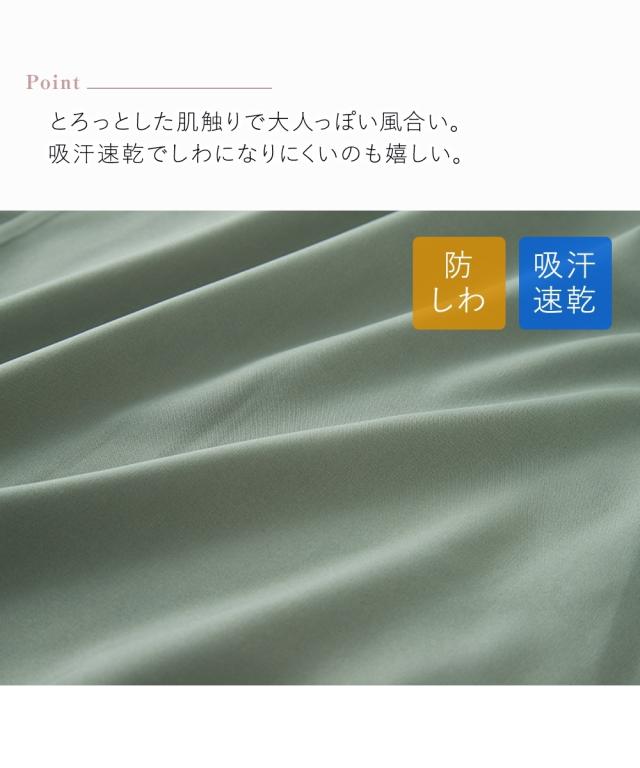 品質=ポリエステル95%・ポリウレタン5% 透け感:やや透ける ※色によって透け感が異なる場合があります。淡色カラーはベージュ系インナー着用をおすすめします。 伸縮性:なし 生地の厚み:やや薄い 光沢感:ややあり 季節:春・夏・秋・冬(冬はインナーアイテムとして活躍) シルエット:ややゆったり 原産国:中国製 備考:洗濯機OK ネット使用