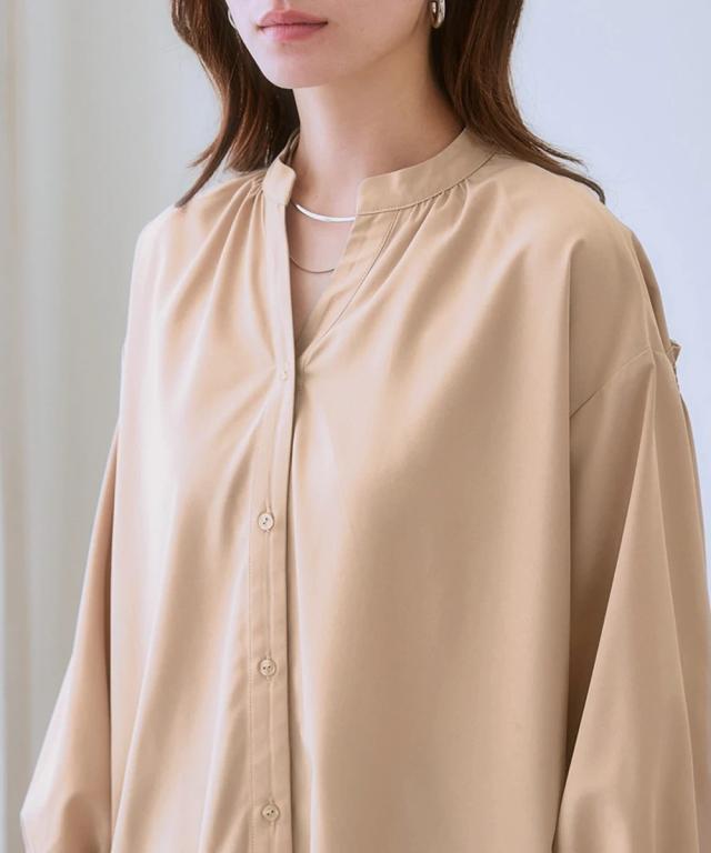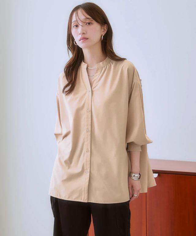 【とろみ素材】バックシャーリングスキッパーシャツ(防シワ・吸汗速乾)