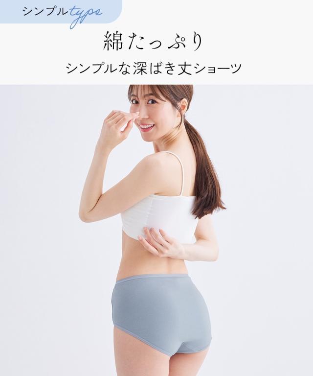 綿混ストレッチ シンプル深ばき丈ショーツ