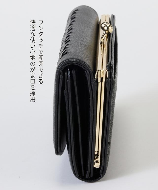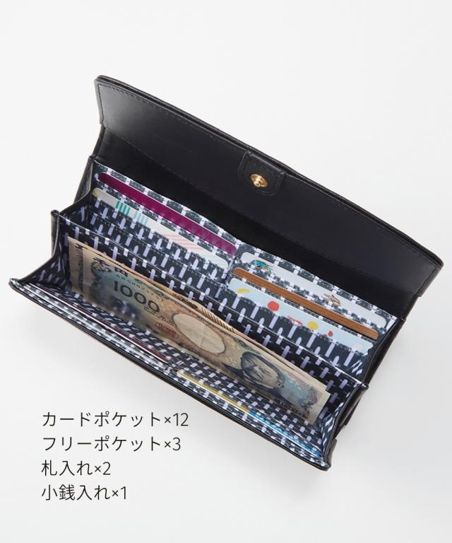 材質=合成皮革 サイズ=たて約9.5×よこ約19×まち幅約4cm 開閉=がま口・スナップボタン ポケット=中:18個(カード入れ12、札入れ2、小銭入れ2、オープン2)外:1個(オープン1) 重量=約300g 原産国:中国製 備考:※サイズの誤差は多少発生します。