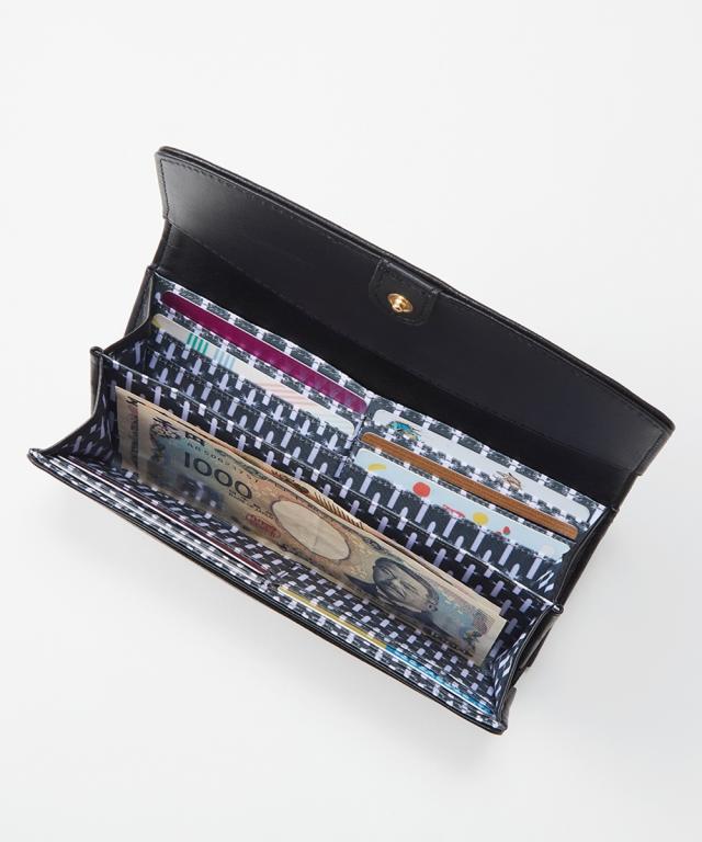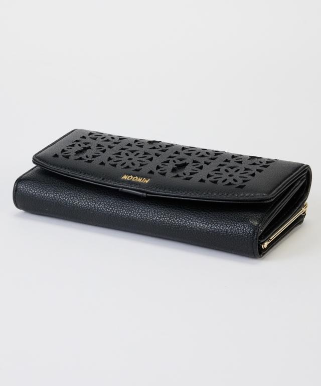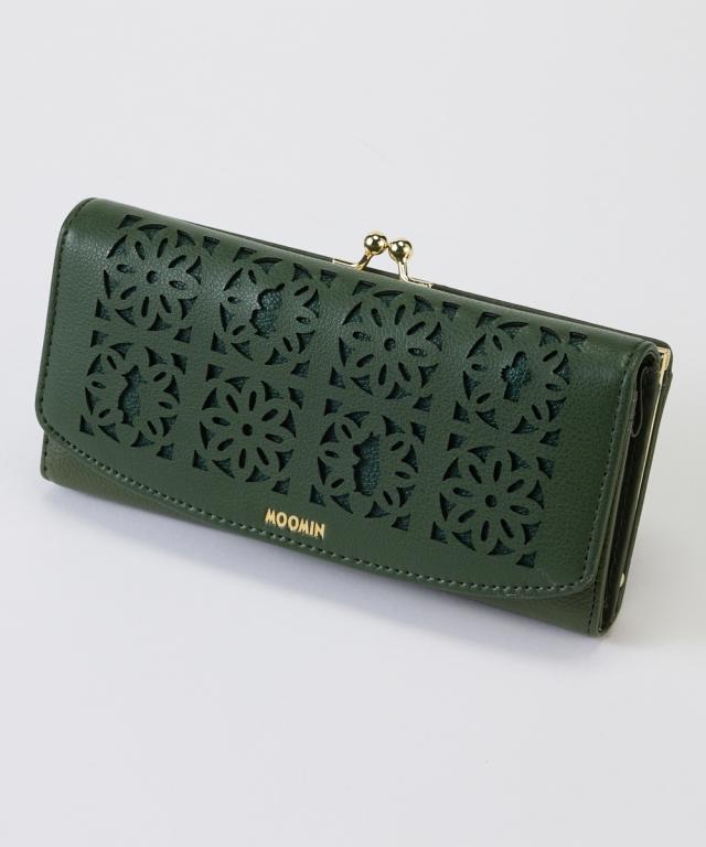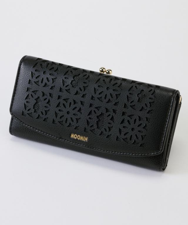 MOOMIN(ムーミン)のたっぷり容量のがま口財布。キャラクターのシルエットの型抜き素材がと・に・か・く!おしゃれでかわいい。大人が使いやすい、カジュアル過ぎない落ちついたデザインの合皮素材の長財布です。カード入れも充実しており、ついついカードやレシートがたまってしまいがちな方も使いやすい容量感。化粧箱付きなのでギフトにもおすすめですよ。■ポイント・ムーミン谷のキャラクターシルエットの形にレーザーカットされた繊細な装飾・上品な質感のフェイクレザーに箔押しされた金色のMOOMINロゴ・遊び心溢れるニョロニョロをモチーフにした総柄プリント裏地・調整可能な2つのスナップボタン仕様・贈り物にも最適な専用化粧箱付き